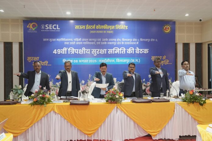 बिलासपुर@M4S:साउथ ईस्टर्न कोलफील्ड्स लिमिटेड (एसईसीएल) बिलासपुर में दिनांक 08 अगस्त 2025 को खान सुरक्षा महानिदेशालय, पश्चिमी अंचल नागपुर एवं उसके रायगढ़ क्षेत्र, बिलासपुर क्षेत्र-1 एवं क्षेत्र-2, तथा उत्तरी अंचल गाजियाबाद एवं उसके जबलपुर क्षेत्र के तत्वावधान में 49वीं त्रिपक्षीय खान सुरक्षा समिति की बैठक आयोजित की गई।