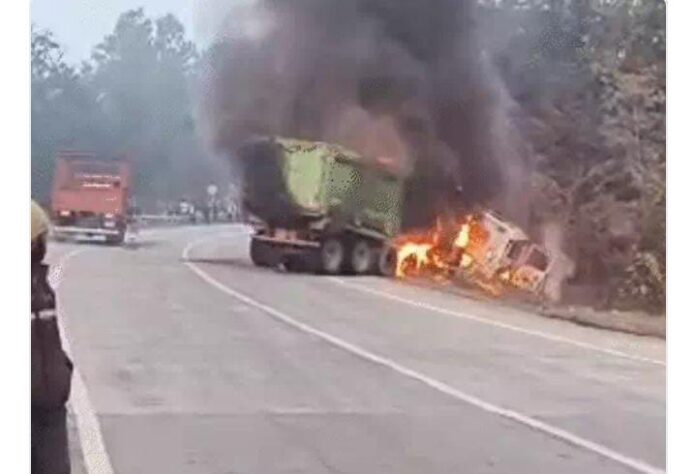 कोयला लोड ट्रेलर और सीमेंट से भरे ट्रक में जोरदार भिड़ंत वाहनों में लगी आग, ट्रक ड्राइवर जिंदा जला