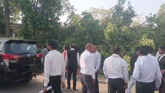 कोरबा@M4S:कोरबा जिला न्यायालय परिसर में स्थित हनुमान मंदिर परिसर में मौजूद विशाल पीपल के पेड़ का एक हिस्सा अचानक हवा के चलने से गिर गया,गनीमत रही की कोई जनहानि नहीं हुई,पेड़ के गिरने से एक अधिवक्ता की कार और कुछ बाइक दब गई वही एक महिला को चोट आई है,पेड़ के गिरते ही मौके पर अधिवक्ताओं और न्यायालय में पेशी में मौके पक्षकारों की भीड़ लग गई,पीपल का पेड़ हारा भारा है,पेड़ के गिरने से भीषण गर्मी से छाँव के नीचे कोई मौजूद नहीं था नहीं तो एक बड़ा हादसा हो सकता था। जिला अधिवक्ता संघ के सचिव सुनील यादव ने बताया की अचानक पेड़ गिरने से वाहनों को नुकसान पंहुचा है एक महिला को चोट आई है,अच्छी बात रही की कोई जनहानि नहीं हुई।