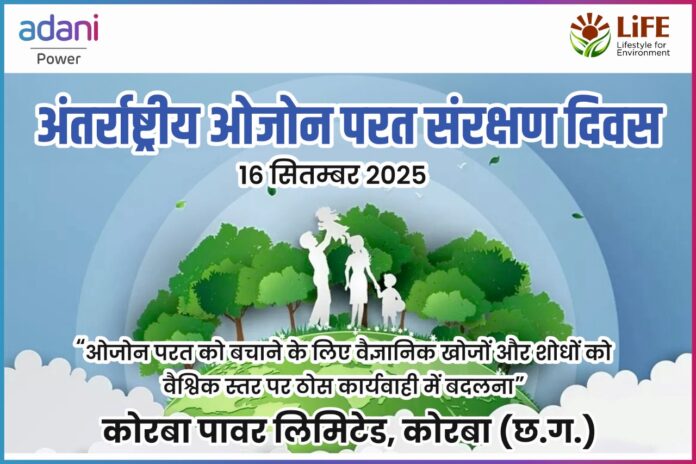 कोरबा@M4S:जिले के बरपाली तहसील में स्थित अदाणी कोरबा पावर लिमिटेड (केपीएल),पताड़ी में विश्व ओज़ोन दिवस और सेवा पर्व के उपलक्ष्य में विशेष जागरूकता कार्यक्रमों का आयोजन किया जाएगा। केपीएल संयंत्र के पर्यावरण विभाग द्वारा 16 से 20 सितंबर तक आयोजित किए जाने वाले इस अभियान में इस वर्ष की थीम “विज्ञान से वैश्विक कार्रवाई की ओर” है, जो पर्यावरण संरक्षण एवं ओजोन परत की सुरक्षा के प्रति जन-जागरूकता बढ़ाने हेतु समर्पित है तथा “सेवा पर्व” की भावना के अनुरूप है।
