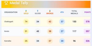 छत्तीसगढ़ 150 मेडल और 578 अंक के साथ पहले स्थान पर