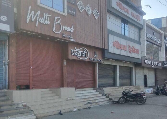कोरबा@M4S:प्रदेश में हाल ही में कांकेर सहित कुछ ग्रामीण क्षेत्रों में उत्पन्न तनाव, विभिन्न समुदायों के बीच बढ़ती गलतफहमियों, हिंसक घटनाओं तथा प्रशासन और सरकार की कथित अकर्मण्यता व उदासीनता के विरोध में सर्व समाज छत्तीसगढ़ ने बुधवार को प्रदेशव्यापी छत्तीसगढ़ बंद का आह्वान किया था। इस बंद को चैंबर ऑफ कॉमर्स का समर्थन मिला। प्रदेश बंद का ऊर्जाधानी में व्यापक असर देखने को मिला। अधिकांश दुकानें बंद रही।