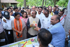 श्री साव ने रेशम उत्पादन में आने वाली बाधाओं को दूर करने की बात कही। इसके लिए रेशम विभाग से जुड़े अधिकारियों को कार्यालय आकर समस्याओं को चिन्हित कराने को कहा। उप मुख्यमंत्री श्री साव और अन्य अतिथियों ने मेरा रेशम, मेरा अभिमान के पोस्टर का विमोचन भी किया। उन्होंने रेशम कृषि मेले में लगे स्टॉल्स का अवलोकन किया।