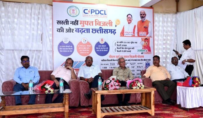 छत्तीसगढ़ स्टेट पॉवर डिस्ट्रीब्यूशन कंपनी द्वारा प्रधानमंत्री सूर्य घर मुफ्त बिजली योजना को गति प्रदान करने के उद्देश्य से प्रदेशभर में जन-जागरूकता शिविर आयोजित किये जा रहे हैं। पॉवर कंपनी के डंगनिया मुख्यालय में आयोजित शिविर में उत्पादन कंपनी के प्रबंध निदेशक एसके कटियार, पारेषण कंपनी के प्रबंध निदेशक राजेश कुमार शुक्ला एवं वितरण कंपनी के प्रबंध निदेशक भीम सिंह कंवर सहित निदेशक (वाणिज्य) आरए पाठक विशेष रूप से उपस्थित थे। शिविर में रूफटॉफ सोलर पॉवर प्लांट लगाने वाले वेंडर स्टाल और त्वरित ऋण सुविधा देने के लिए बैंक के अधिकारी भी मौजूद रहे। स्पॉट पर ही सभी औपचारिकताएं पूरी करके आवेदन संबंधी प्रक्रिया पूरी की गई।