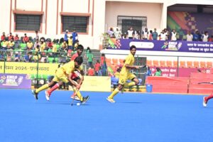 रायपुर@M4S:खेलो इंडिया ट्राइबल गेम्स में आज रायपुर के सरदार वल्लभ भाई पटेल अंतरराष्ट्रीय हॉकी स्टेडियम में पुरुषों की हॉकी में छत्तीसगढ़ और मध्यप्रदेश के बीच तीसरे और चौथे स्थान के लिए मैच खेला गया। इसमें छत्तीसगढ़ ने मध्यप्रदेश को 14-6 से हरा कर कांस्य पदक जीता।