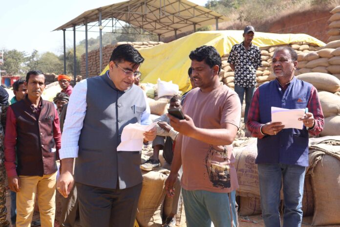 कोरबा@M4S:कलेक्टर कुणाल दुदावत ने आज खरीफ विपणन वर्ष 2025-26 के अंतर्गत कोरबा विकासखंड के ग्राम बरपाली स्थित धान उपार्जन केंद्र का औचक निरीक्षण किया। उन्होंने केंद्र में पहुंचे किसानों के धान की नमी और गुणवत्ता को स्वयं परखकर खरीदी की स्थिति का जायजा लिया। निरीक्षण के दौरान उन्होंने किसानों से केंद्र में उपलब्ध सुविधाओं और व्यवस्थाओं के बारे में जानकारी ली।