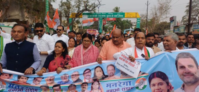 केन्द्र सरकार द्वारा महात्मा गांधी राष्ट्रीय ग्रामीण रोजगार गारंटी अधिनियम का नाम बदलकर व्ही बी जी राम जी किये जाने के विरोध में कांग्रेस ने देशव्यापी आंदोलन मनरेगा बचाओ अभियान चलाया है जिसके तहत् आज कोरबा जिला शहर एवं ग्रामीण कांग्रेस कमेटी के द्वारा प्रदर्शन किया गया ।