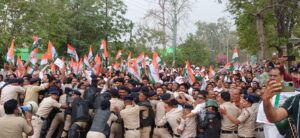 जैसे ही रैली कलेक्टर कार्यालय की ओर बढ़ी पहले से ही प्रशासन ने भारी पुलिस बल तैनात कर बेरिकेडिंग करा दिया था । पहले बेरिकेड को हटाकर कांग्रेसी आगे बढ़े लेकिन कुछ ही कदम पर दूसरे बेरिकेड पर रोक लिया गया ।