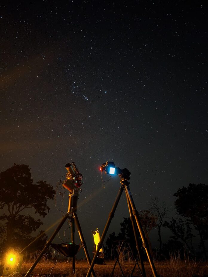 रायपुर@M4S:जिले के पर्यटन स्थल राजमेरगढ़ में जिला प्रशासन एवं बनमनई इको केअर फाउंडेशन के संयुक्त तत्वावधान में शनिवार को कॉस्मिक नाइट्स ए स्टार गेजिंग एडवेंचर का सफल आयोजन किया गया। इस कार्यक्रम में बड़ी संख्या में युवाओं और प्रकृति प्रेमियों ने हिस्सा लिया, जिसमें मुख्य आकर्षण आधुनिक टेलिस्कोप से बृहस्पति और उसके चंद्रमा, शनि के छल्ले, ओरायन, प्लेयडीज़ सहित कई प्रमुख नक्षत्र तथा विभिन्न नेब्युला, तारा समूह, एण्ड्रोमेडा गैलेक्सी एवं अन्य खगोलीय पिण्डों का अवलोकन किया गया। खगोलीय विशेषज्ञ देवल सिंह बघेल द्वारा नक्षत्रों, ग्रहों और बम्हांड विज्ञान पर विशेष सत्र का आयोजन किया गया। उन्होंने प्रतिभागियों को रात में आकाश की वैज्ञानिक व्याख्या अत्यंत रोचक और सरल भाषा में बताया। उन्होंने प्रतिभागियों को नक्षत्रों की पहचान, तारों की संरचना, तापमान और आयु, ग्रहों की कक्षाएँ और गति, ध्रुवतारा से दिशा निर्धारण, आकाशगंगा की संरचना, ब्रह्मांड के विकास सिद्धांत तथा रात में आकाश में मौसमी बदलाव के बारे में विस्तार से बताया।