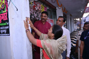 सूरजपुर की दुकानों में ग्राहकों से की सीधी बातचीत, जागरूकता के लिए लगाए गए स्टीकर