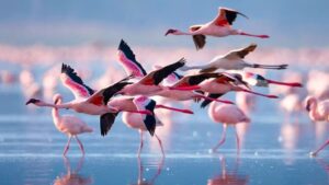 इतनी घातक परिस्थितियों के बावजूद, नेट्रॉन झील पूरी तरह निर्जीव नहीं है। यहां का नजारा तब और भी अद्भुत हो जाता है जब झील का पानी लाल रंग का दिखाई देता है। यह रंग साइनोबैक्टीरिया की वजह से होता है। हैरानी की बात यह है कि यह झील लेसर फ्लेमिंगो का मुख्य प्रजनन स्थल है। इन पक्षियों की टांगों पर सख्त सुरक्षात्मक परत होती है, जो उन्हें इस पानी से बचाती है। साथ ही, तिलापिया मछली की कुछ प्रजातियां भी इस पानी के अनुसार खुद को ढाल चुकी हैं।
