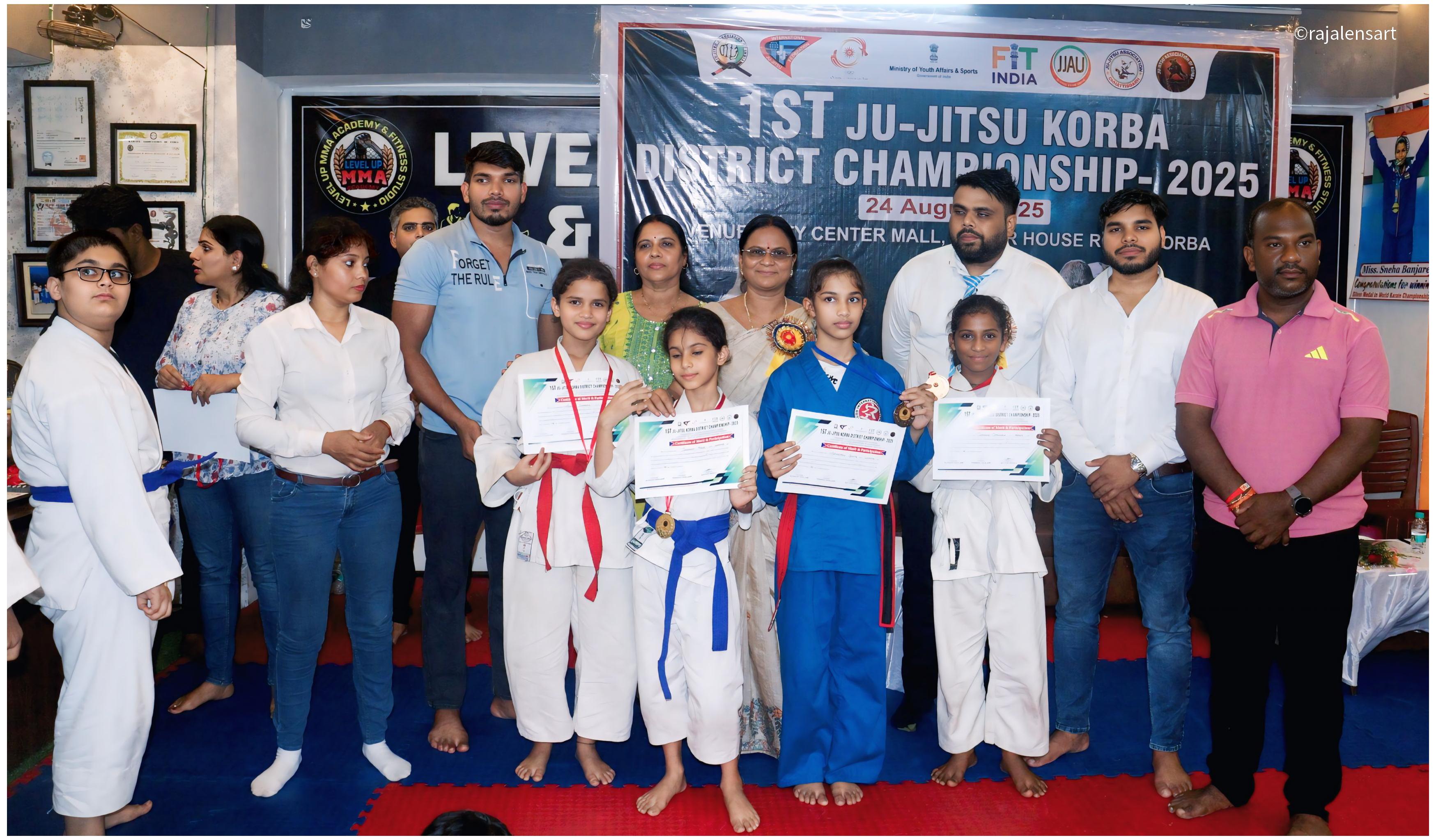कोरबा@M4S:जू-जित्सु एसोसिएशन ऑफ कोरबा द्वारा आयोजित एवं सह-संयोजक लेवल अप मिक्स्ड मार्शल आर्ट्स अकादमी के सहयोग से प्रथम कोरबा जिला जू-जित्सु प्रतियोगिता का भव्य आयोजन कोरबा के हृदय स्थल सिटी सेंटर मॉल स्थित लेवल अप मिक्स्ड मार्शल आर्ट्स अकादमी, कोरबा में बड़े उत्साह और जोश के साथ संपन्न हुआ। प्रतियोगिता में जिलेभर से 90 खिलाड़ियों ने भाग लिया और अपनी प्रतिभा, अनुशासन एवं खेल भावना का शानदार प्रदर्शन किया।