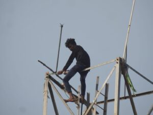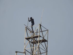 कोरबा@M4S:कोरबा जिले के रजगामार चौकी क्षेत्र के रावणभांटा गांव में 26 साल का युवक शोले फिल्म की तरह २०० फीट ऊंचे टावर पर चढ़ गया। इस दौरान वह अपनी पत्नी को आवाज देने लगा। उसकी आवाज सुनकर देखते ही देखते लोगों की भीड़ एकत्रित हो गई। इसकी सूचना रजगामार चौकी पुलिस को दी गई, जहां चौकी प्रभारी लक्ष्मण खूंटे स्टाफ के साथ मौके पर पहुंचे।घटना की सूचना पर युवक की पत्नी मौके पर पहुंची और पति को समझाया, लेकिन युवक अपनी हरकतों से बाज नहीं आ रहा था। करीब एक घंटे तक यह ड्रामा चलता रहा। युवक टावर पर चढ़कर बार-बार चिल्लाता रहा और कूदने की धमकी देता रहा। किसी तरह थाना प्रभारी ने उसे समझाकर टावर से नीचे उतरने को कहा। तब जाकर वह सुरक्षित नीचे उतरा।