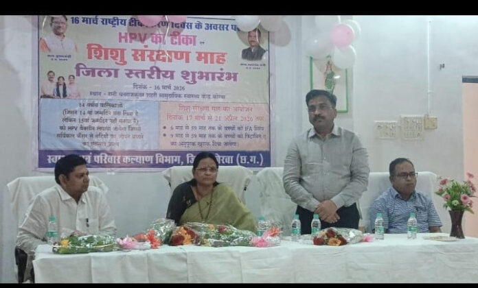 कोरबा@M4S:रानी धनराज कुंवर देवी शहरी सामुदायिक स्वास्थ्य केन्द्र कोरबा में गत दिवस एचपीवी वैक्सीनेशन एवं शिशु संरक्षण माह का शुभारंभ संजू देवी राजपूत महापौर नगरपालिक निगम कोरबा के द्वारा किया गया।