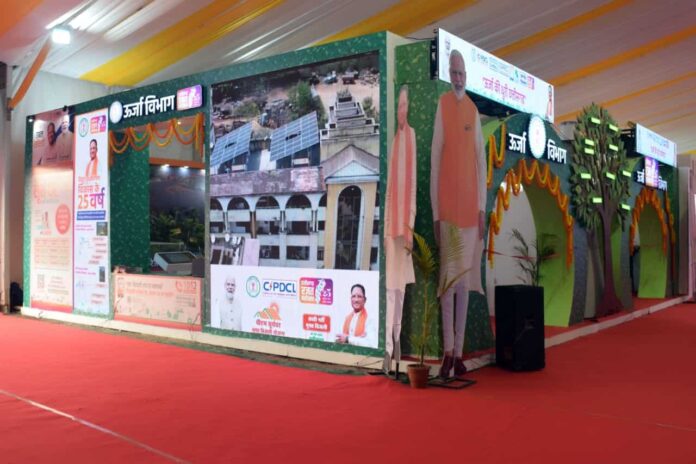 मण्डप के प्रवेश द्वार पर प्रधानमंत्री नरेन्द्र मोदी तथा मुख्यमंत्री विष्णुदेव साय के कट आउट लगे है। ऊर्जा विभाग के मण्डप में ऊर्जा के भावी स्त्रोतों का रोचक चित्रण है। जिसके लिए पम्प स्टोरेज बिजली घर, कंपे्रस्ड बायो गैस, सोलर सिटी, आदर्श सोलर गांव, नियद नेल्लानार तथा विद्युत सुरक्षा संबंधी माॅडल प्रदर्शित किये गये है। प्रधानमंत्री सूर्यघर मुफ्त बिजली योजना की प्रस्तुति काफी रोचक ढंग से की गई है। कठपुतली नृत्य के माध्यम से ‘सुखीराम-दुखीराम‘, ‘पति-पत्नी और वो‘ कहानी की प्रस्तुति की जा रही है जो प्रधानमंत्री सूर्यघर मुफ्त बिजली योजना के बारे में व्यापक जनजागरण कर रही है। क्विज प्रतियोगिता के विजेताओं को क्यू आर कोड इनेबल्ड की-रिंग पुरस्कार स्वरूप प्रदान किये जा रहे हैं। वहीं योजना के लिए स्थल पर पंजीयन कराने वाले उपभोक्ताओं को टी शर्ट प्रदान की जा रही है।