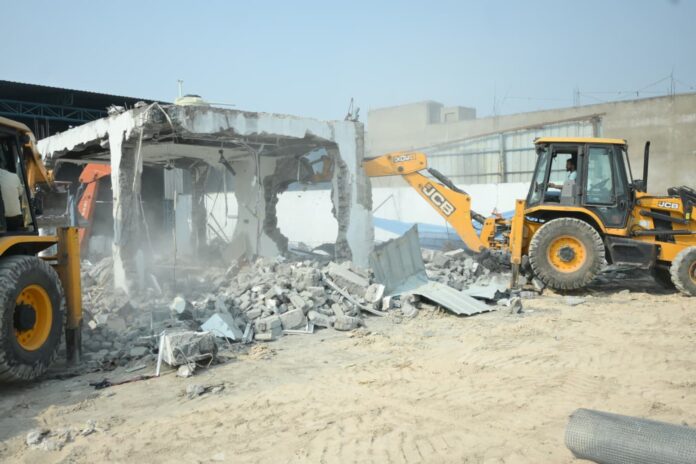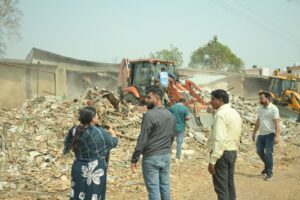 इसी प्रकार झगरहा बस्ती क्षेत्र में कबाड़ व्यवसायी सियाराम एवं मदनलाल के द्वारा लगभग 50 डिसमिल जमीन पर अवैध रूप से कब्जा कर 02 कबाड़ यार्ड बना लिये गये थे, जहाॅं पर उनके द्वारा अवैध कबाड़ व्यवसाय किया जा रहा था, प्रशासन की संयुक्त टीम झगरहा पहुंची तथा वहाॅं पर भी सख्त कार्यवाही करते हुये दोनों कबाड़ यार्डो को बुलडोजर के माध्यम से ध्वस्त कर दिया।