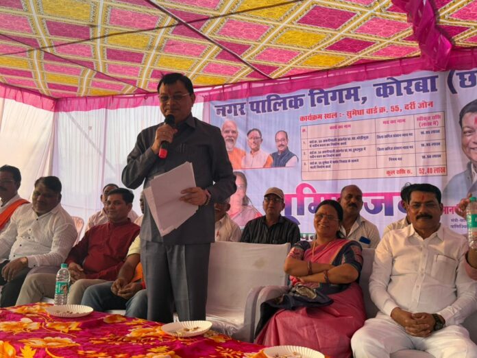 इस मौके पर भाजपा जिलाध्यक्ष श्री गोपाल मोदी ने अपने उद्बोधन में कहा कि मुख्यमंत्री श्री विष्णुदेव साय के नेतृत्व में छत्तीसगढ़ का तेजी से विकास हो रहा है, उन्होने कहा कि उद्योग मंत्री श्री लखनलाल देवांगन हमेशा कोरबा के विकास की चिंता करते हैं तथा कोरबा में विकास कार्यो हेतु फण्ड की लगातार व्यवस्था व स्वीकृति उनके द्वारा शासन स्तर पर कराई जा रही है, जिसके परिणाम स्वरूप कोरबा नगर निगम क्षेत्र में लगातार विकास कार्य कराए जा रहे हैं, वार्ड, बस्तियों की समस्याएं दूर हो रही हैं। श्री मोदी ने कहा कि मुख्यमंत्री श्री विष्णुदेव साय व उद्योग मंत्री श्री लखनलाल देवांगन के प्रयासों से छत्तीसगढ़ में साढे़ 07 लाख करोड़ रूपये का निवेश उद्योगों में हे रहा है, जो हम सब के लिए गर्व व प्रसन्नता का विषय है। इस मौके पर वार्ड क्र. 54 के पार्षद मुकुंद सिंह कंवर व वार्ड क्र. 55 के पार्षद किशन कैवर्त ने भी संबोधित करते हुए विकास कार्यो हेतु उद्योग मंत्री श्री लखनलाल देवांगन व महापौर श्रीमती संजूदेवी राजपूत के प्रति आभार व्यक्त किया।