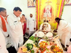 मंत्री श्री देवांगन ने आश्रम में चौका आरती कर प्रदेश की सुख-समृद्धि की कामना की।साथ ही संतों का आशीर्वाद लिया।