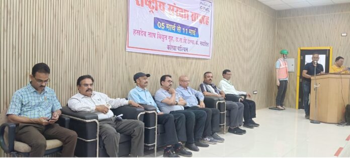 हसदेव ताप विद्युत गृह (एचटीपीएस) कोरबा पश्चिम में 05 से 11 मार्च 2026 तक राष्ट्रीय संरक्षा सप्ताह मनाया गया। सप्ताहभर हुए कार्यक्रम में मुख्य अभियंता श्री एचके सिंह एवं विशिष्ट अतिथि अतिरिक्त मुख्य अभियंता सर्वश्री एमके गुप्ता, एके. शाह, आरके. पांडे, केएनबी. राव, एसके. नायर, परियोजना प्रबंधक एसके. पंड्या और वरिष्ठ मुख्य रसायनज्ञ एके. कुरनाल द्वारा अपने उद्बोधन में कर्मचारियों एवं श्रमिकों को संरक्षा के प्रति जागरूक किया गया।
