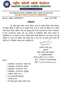 कोरबा@M4S:राष्ट्रीय कालरी वर्कर्स फेडरेशन (Rashtriya Colliery Workers’ Federation – RCWF) जो कि सेंट्रल इंडिया कोलफील्ड्स का एक प्रतिष्ठित और ऐतिहासिक यूनियन है ने एक महत्वपूर्ण संगठनात्मक घोषणा की फेडरेशन ने संतोष कुमार चौहान टिपर ऑपरेटर गेवरा क्षेत्र को तत्काल प्रभाव से अपनी केंद्रीय समिति में सचिव के पद पर नियुक्त किया है यह नियुक्ति फेडरेशन के अध्यक्ष द्वारा विधिवत अनुमोदित की गई है RCWF के महामंत्री भागवत प्रसाद दुबे द्वारा जारी अधिसूचना के अनुसार चौहान की नई भूमिका कोरबा संभाग के मुख्य कोयला खनन क्षेत्रों कोरबा ,गेवरा ,दीपका और कुसमुंडा में केंद्रित होगी ।