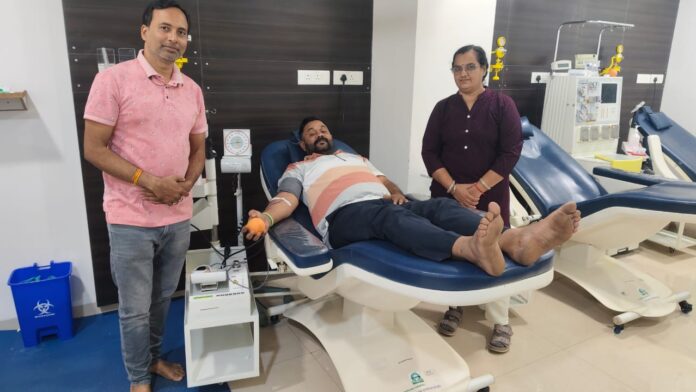 रायपुर@M4S:बालको हॉस्पिटल में भर्ती एक मरीज के लिए ठठारी गांव के रक्तविर सतीश सिंह ठाकुर ने एक ही काल पर रायपुर आ कर रक्तदान किया। मरीज के परिजनों ने सपर्क किया था , तब उन्होंने उनके लिये ब्लड उपलब्ध करने की बात कही थी।