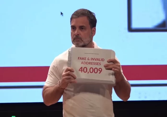 नई दिल्ली(एजेंसी):लोकसभा में नेता प्रतिपक्ष और कांग्रेस सांसद राहुल गांधी ने चुनाव आयोग को एक बार फिर से कठघरे में खड़ा है। उन्होंने गुरुवार को एक पीसी कर कथित सबूत पेश किया, जिसके तहत राहुल गांधी ने दावा किया कि चुनाव आयोग वोटर लिस्ट में लागातार धांधली कर रहा है।