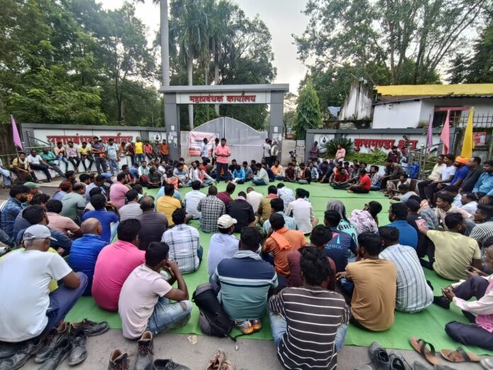 कोरबा@M4S:एसईसीएल कुसमुंडा क्षेत्र में कार्यरत ठेका कामगारों ने बोनस की मांग को लेकर आज सुबह 5:00 बजे से काम का बहिष्कार कर एक दिवसीय धरना प्रदर्शन किया कामगारों ने सुबह अपने वाहनों को खड़ा कर दिया और सुबह 9:00 बजे से एसईसीएल के मुख्य कार्यालय के सामने शांतिपूर्ण धरना प्रदर्शन शुरू किया ।