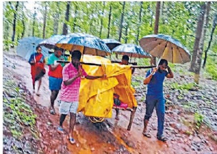 ताजा मामला पाली विकासखंड के ब्लॉक मुख्यालय से लगभग 37 किलोमीटर दूर स्थित ग्राम पंचायत बारीउमराव के गांव जलहल का है। गांव में रहने वाली करसीला एक्का (37) पति रामधन एक्का मौसमी बीमारी की चपेट में आ गई। शरीर बुखार से तप रहा था। करसीला की बिगड़ती तबीयत को देखते हुए रामधन एक्का ने एंबुलेंस (108 संजीवनी एक्सप्रेस) को कॉल किया। लेकिन एबुंलेंस नहीं पहुंची। इस बीच झमाझम बारिश हो रही थी। परिजन आनन-फानन में बरसते बादल के बीच मरीज को खाट के सहारे लीमगांव तक ले आए। इस दौरान बारिश से मरीज को बचाने के लिए खाट को तिरपाल से ढंका और मरीज को छाता भी ओढ़ाया। मरीज को लेकर सड़कविहीन गांव से लीमगांव मुख्य मार्ग तक लगभग सात किलोमीटर पैदल चले। लीमगांव मुख्य मार्ग से निजी वाहन की मदद से पाली मुख्यालय के निजी अस्पताल में भर्ती कराया गया। घटना रविवार की बताई जा रही है। महिला की तबीयत सामान्य है, लेकिन इस दौरान परिजनों को काफी परेशानी का सामना करना पड़ा। ग्रामीणों ने बताया कि पाली विकासखंड के ग्राम जलजल से लीमगांव तक सड़क की मांग लंबे समय से कर रहे हैं। गांव से मुख्य मार्ग की दूरी लगभग सात किलोमीटर है, लेकिन जिला प्रशासन द्वारा सड़क निर्माण को लेकर गंभीरता नहीं दिखाई जा रही है। इसकी वजह से काफी असुविधा हो रही है। इसकी शिकायत ब्लॉक मुख्यालय से लेकर जिला प्रशासन से कई बार की जा चुकी है, मगर परिणाम सिफर ही रहा है।