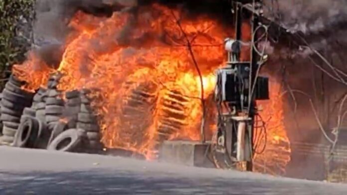 कोरबा@M4S:कोरबा के बांकीमोंगरा थाना थाना क्षेत्र के सुतर्रा कटघोरा मुख्य मार्ग पर टायर गोदाम में को भीषण आग लग गई। आग इतनी तेज थी कि दूर दूर तक काले धुएं का गुबार और लपटें दिखाई दे रही थीं। घटना के बाद पूरे इलाके में हड़कंप मच गया। आसपास के लोग दहशत में आ गए और कई घरों व दुकानों से लोग बाहर निकलकर भागने लगे। प्रत्यक्षदर्शियों के अनुसार गोदाम के सामने लगे ट्रांसफार्मर से अचानक चिंगारी निकली जो गोदाम में रखे टायरों तक पहुंच गई। टायर होने के कारण आग ने कुछ ही मिनटों में विकराल रूप ले लिया। देखते ही देखते पूरा गोदाम आग की चपेट में आ गया। आग लगने के साथ ही क्षेत्र की विद्युत व्यवस्था भी ठप हो गई। घटना की सूचना मिलते ही दमकल को जानकारी दी गई। दमकल वाहन मौके पर पहुंच कर कड़ी मशक्क़त के बाद आग पर काबू पाया गया। लेकिन टायर में लगी आग पर काबू पाना मुश्किल हो रहा था।