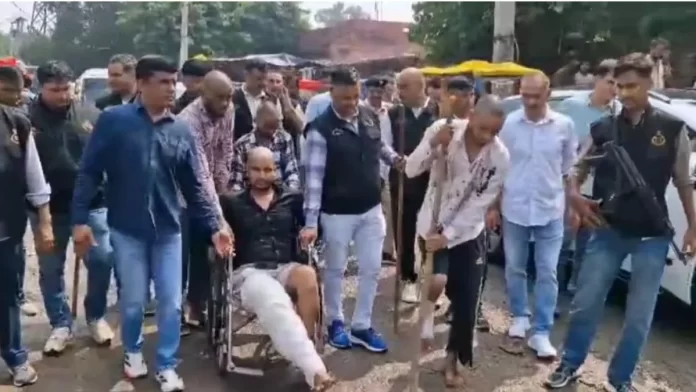 फरीदाबाद(एजेंसी):फरीदाबाद में फिरौती के बल पर लोगों के बीच में अपनी दहशत जमाने वाले बदमाश कमल भड़ाना और शशिकांत को क्राइम ब्रांच ने सिर मुंडवा कर डबुआ मार्केट में घुमाया। कमल भड़ाना व्हील चेयर पर था और शशिकांत बैशाखी का सहारा लेकर चल रहा था।